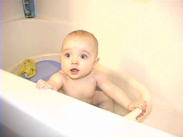 Goody, goody, bath time! |